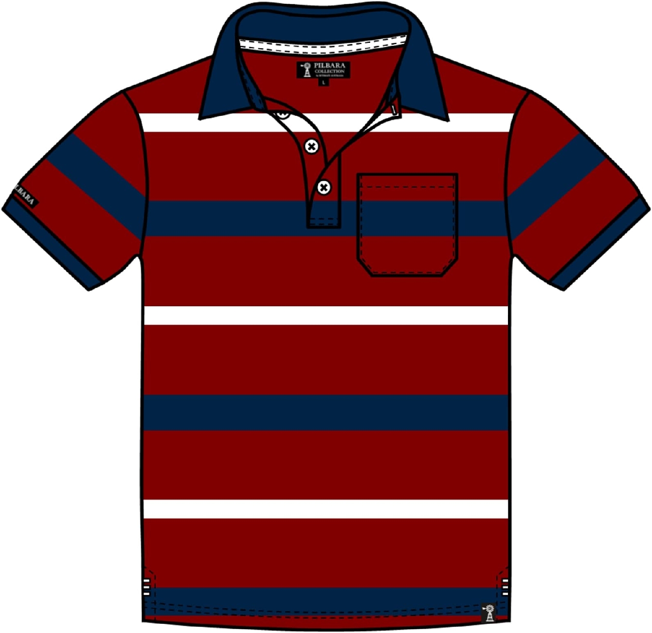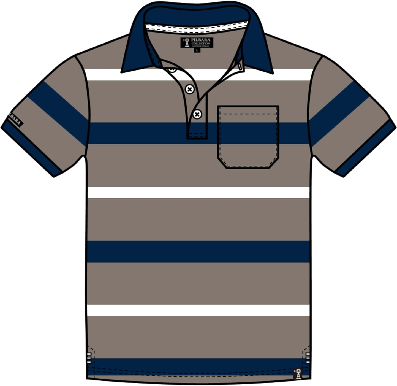 Pilbara Mens Striped Pocket Polo